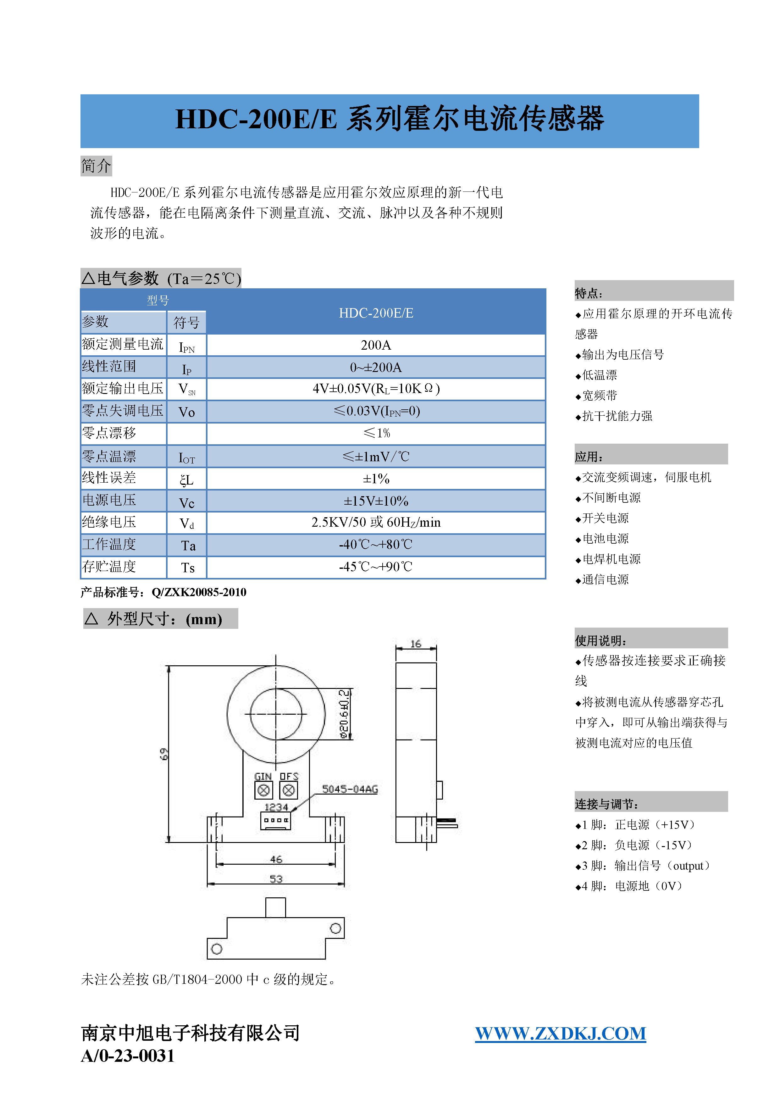 HDC-300E series Hall current sensor is a new generation of current sensor using the principle of Hall effect. It can measure currents of DC, AC, pulse and various irregular waveform under electrical isolation.