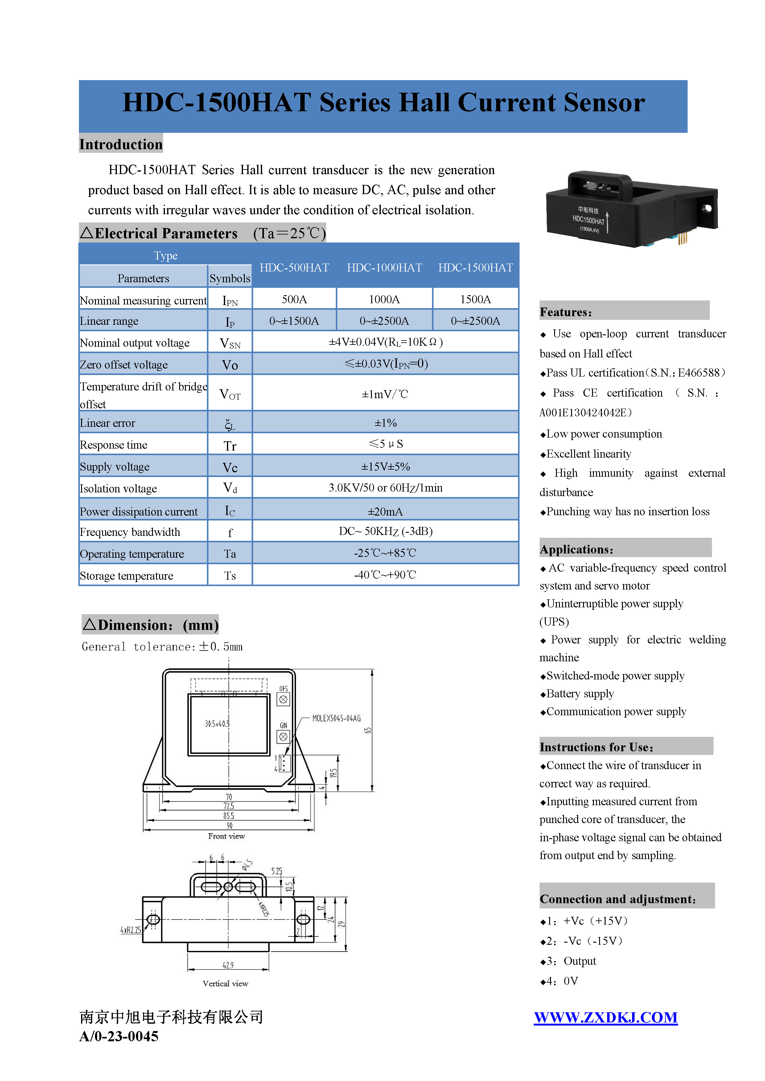 HDC-1500HAT系列霍爾電流傳感器是應(yīng)用霍爾效應(yīng)原理的新一代電流傳感器,能在電隔離條件下測量直流、交流、脈沖以及各種不規(guī)則波形的電流。
